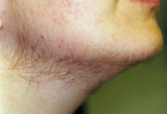 Electrolysis has been available for many years for the management of unwanted hair. With this technique, a fine needle is inserted into the hair follicle and an electrical current is applied. Electrolysis can be painful and time consuming because it treats each hair individually. It is cost effective options for small areas of hirsutism. It can be used on any skin or hair color. Possible side effects include skin swelling and redness followed by changes in skin color and /or scarring.